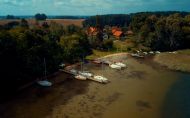 Roganty is a tiny village near Giżycko, which is located on Lake Dargin in the immediate vicinity of the Pierkunowski Róg peninsula. It is a quiet and peaceful spot, away from civilization. The base was built on a former farm. There is a sanitary facility in the base, providing 24/7 access to sanitary facilities and a shower. Our base has direct access to the lake.