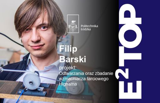 Filip Barski jest pasjonatem techniki. Celem projektu, którym zajmuję się w ramach programu E2TOP jest "Odtworzenie wzmacniacza Highama i zbadanie jego charakterystyki". Należy do Studenckiego Koła Miłośników Motoryzacji, gdzie w drużynie Iron Warriors pracuje w Dziale Mechanicznym. Hobby studenta to renowacja starych gramofonów i fonografów.