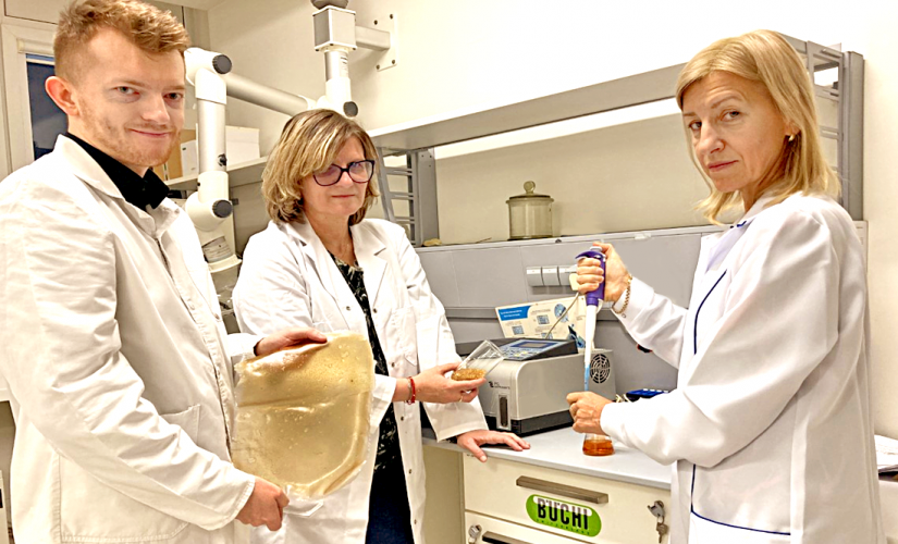 Współpracujemy z Centrum Innowacji i Transferu Technologii Politechniki Łódzkiej, które wspiera nas w kontaktach z potencjalnymi nabywcami technologii. Przełomowym momentem będzie dopracowanie technologii wylewania lub wydmuchu folii i wyprodukowanie większej partii dającej możliwość pakowania żywności w środowisku przemysłowym. Ostatni etap prac technologicznych prowadzimy, korzystając z parku maszynowego Instytutu Nowych Syntez Chemicznych w Puławach, w którym planujemy właśnie kolejne próby technologiczne. Jesteśmy zatem o krok od zaoferowania gotowej folii na rolce, co umożliwi przejście do przemysłowego wykorzystania folii.